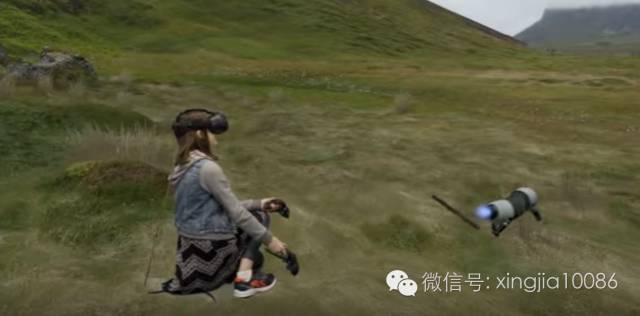 而在此之前,我们看到的大多数的虚拟现实演示大多数都是下面这样,对于很多从来没有体验过虚拟现实的人来说看起来确实有点不知所云,虽然玩耍的人确实因为身临其境感觉很爽。