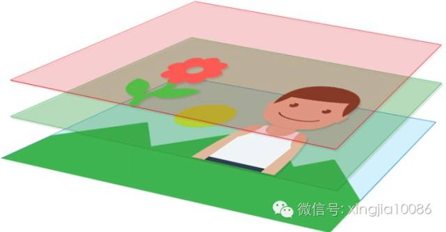 e.g 摄像机捕捉人的影像,覆盖在背景上(山和太阳),前景(花)覆盖人和背景上。