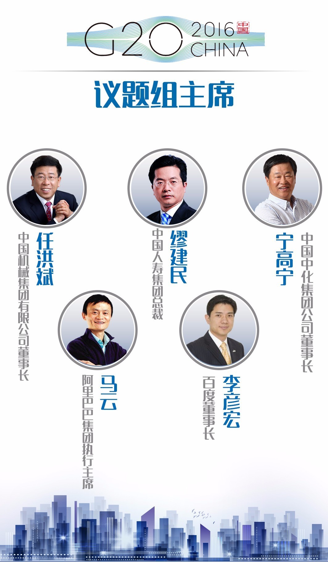 同时,将有全球工商企业、商协会、国际机构和智库代表共500多人参加B20峰会各议题工作组,中化集团董事长宁高宁、阿里巴巴集团董事局主席马云等34位国际工商界领袖担任B20议题工作组的主席或联合主席。