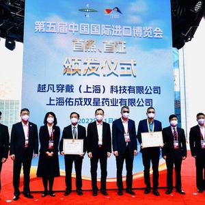 2022年11月5日上午,第五届中国国际进口博览会开幕首日,青浦区市场监督管理局发出首张营业执照——参展商越凡医疗科技有限公司正式落户青浦西虹桥商务区,设立销售总部。同一时间,采购商上海佑成双星药业有限公司也获批了首张医疗器械许可证。