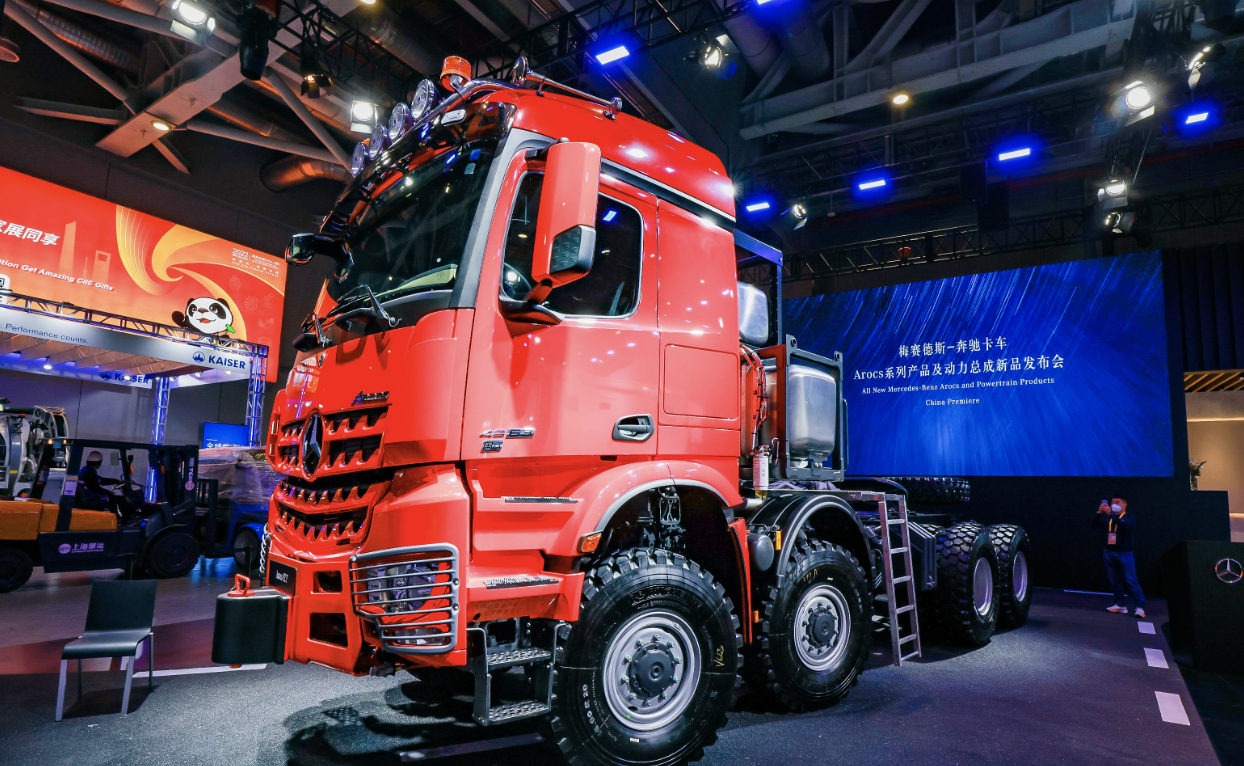 第五届中国国际进口博览会于2022年11月5日至10日在上海举办。此次展会上,奔驰卡车Arocs SLT 首次在汽车展区亮相,被誉为“重载之王”的该款卡车成为进博会上体积大、专业性强的设备展品。