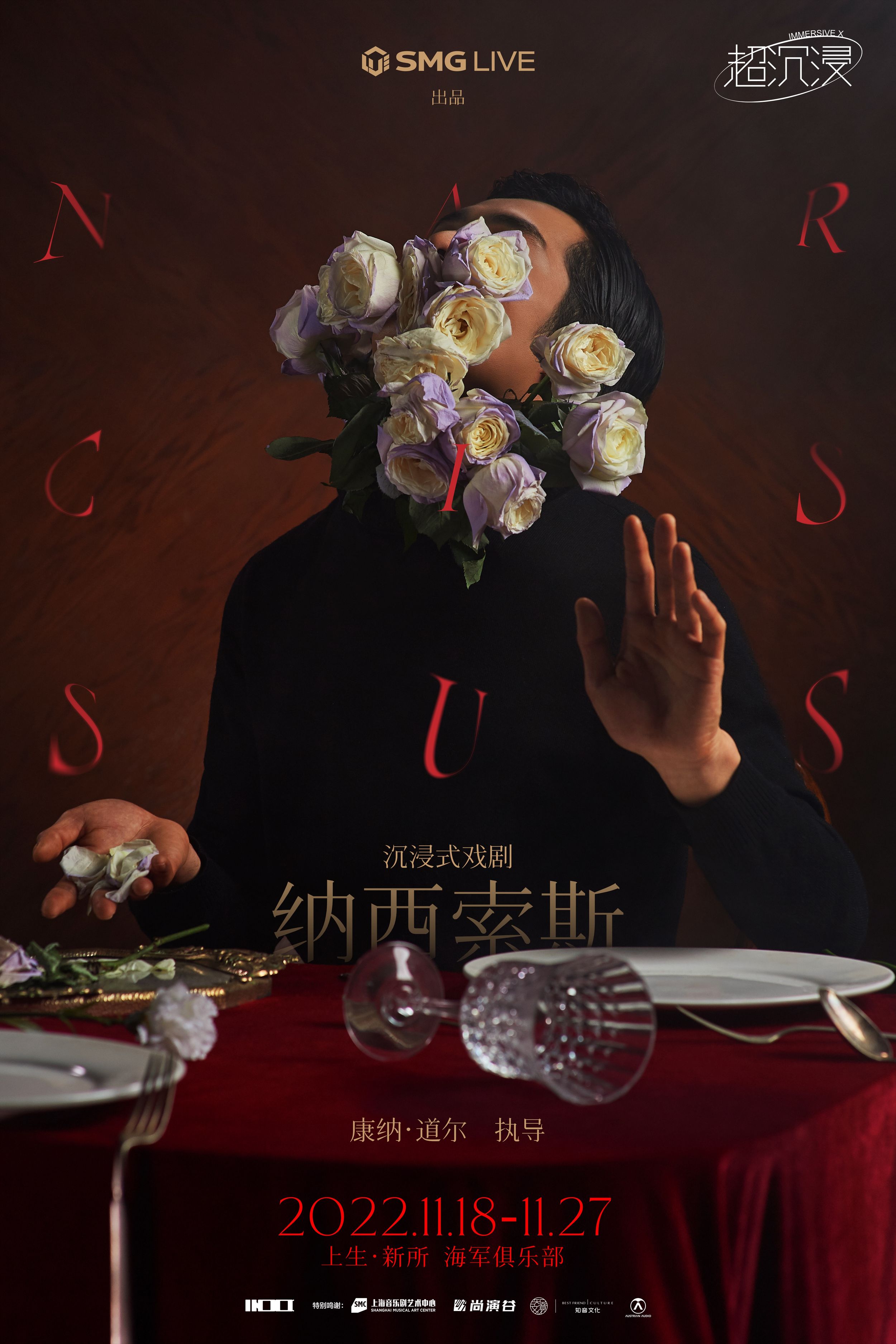 继《不眠之夜》后,《不眠之夜》主创Conor Doyle的全新作品《纳西索斯》将于11月登陆上海。《纳西索斯》是对奥维德经典作品《变形记》中《森林女神与水仙花》这则故事的当代重塑。Doyle表示,他第一次读《变形记》时,震惊于古希腊神话中强烈的现代性。纳西索斯是个神话故事中有名的美男子,他临水自照,爱上了自己的倒影,自此成为“自恋”的代名词。Doyle认为,纳西索斯的故事是一个关于虚荣、错误的自爱和复仇的故事,一个男人变成了一朵花的故事:
