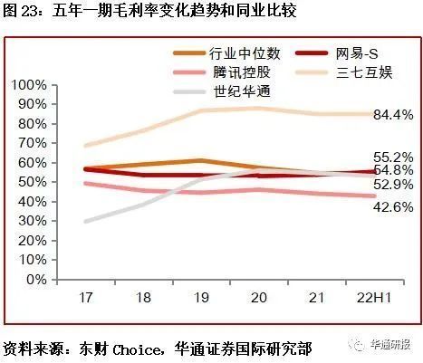 我们以含港美股的申万游戏行业公司中目前收入规模百亿以上企业作为可比公司,同时,考虑到行业平均数容易受到个别极值的影响,我们结合统计游戏行业公司中相关经营指标的中位数进行综合分析比较。