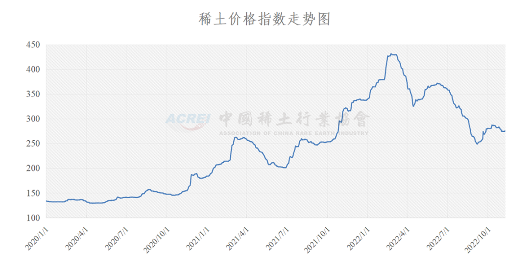 据中国稀土行业协会,11月9日,稀土价格指数报275.1,较前一日下跌0.1点。