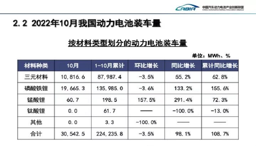 今年1-10月,国内动力电池装车量共计224.2 GWh,相较去年同期呈翻倍式增长。其中,磷酸铁锂装机量达136 GWh,市占率逾六成,较三元电池高出21个百分点,延续了去年的领先优势。