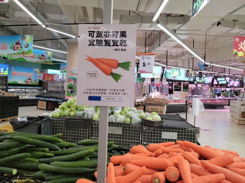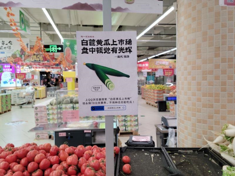 而超市与菜市场这样具有烟火气的场所,也时常成为创意表达的空间。