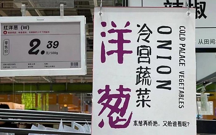 比如大润发在今年6月,以其《甄嬛传》风格的文案掀起了“菜市场文学”。借着《甄嬛传》持续的热度,大润发创作出了特殊时期的营销文案,呼应市民们在疫情中对新鲜蔬果的需求,引发共鸣。市场无人问津的蔬果被标为“冷宫蔬菜” ,例如如洋葱 “本葱再娇艳,又给谁看呢?”像这样拟人化,略带自嘲的创意,给商业文案又增添了几分幽默感。