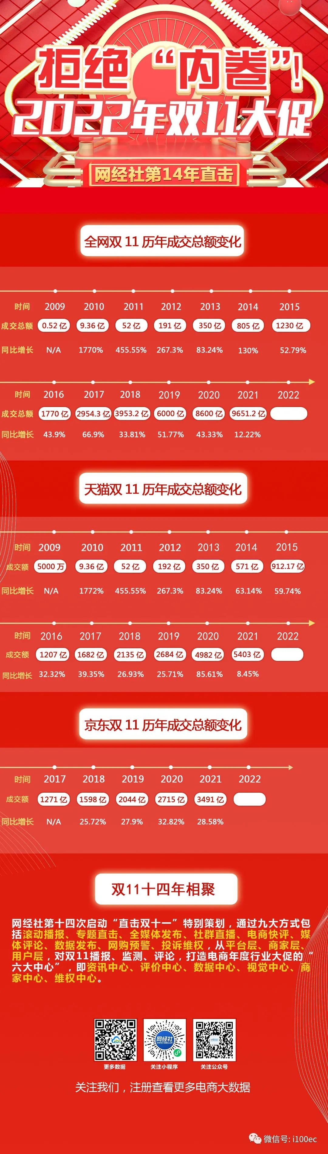 据网经社电商大数据库“电数宝”(DATA.100EC.CN)显示,去年全网双11成交总额为9651.2亿元,同比增长12.22%。