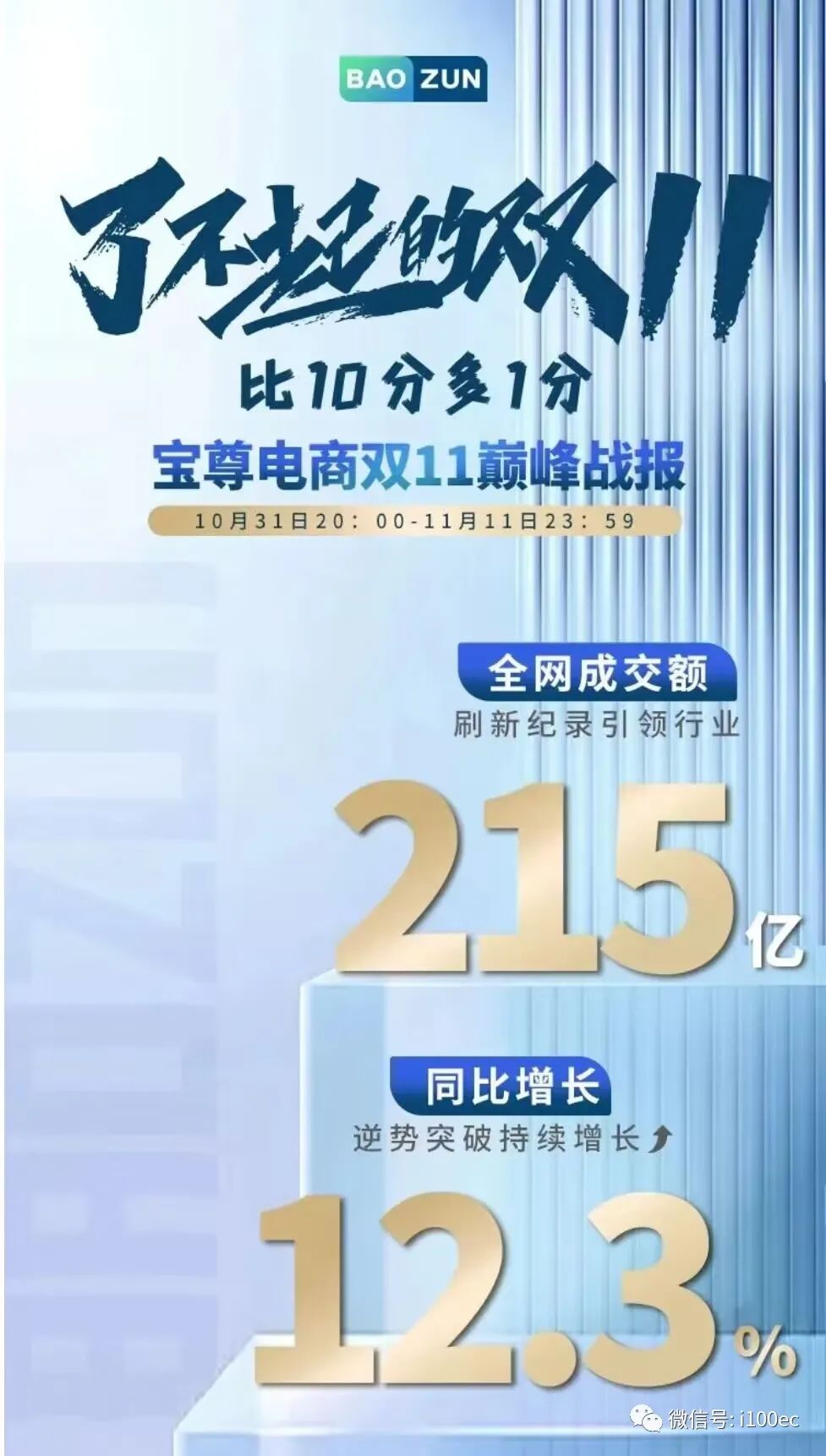 8.宝尊电商:双11全网成交额215亿,同比增长12.3%
