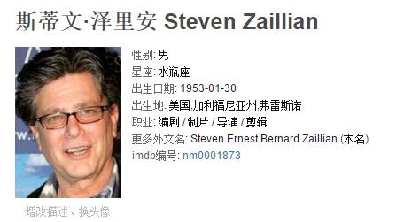 斯蒂文·泽里安可是奥斯卡级的金牌编剧。他参与编剧的电影包括《无语问苍天》《碟中谍》《汉尼拔》《纽约黑帮》《点球成金》《龙纹身的女孩》等等大量热门电影,当然,还少不了大名鼎鼎的《辛德勒的名单》,凭借《辛德勒的名单》,他拿到了那年的奥斯卡。嗯。