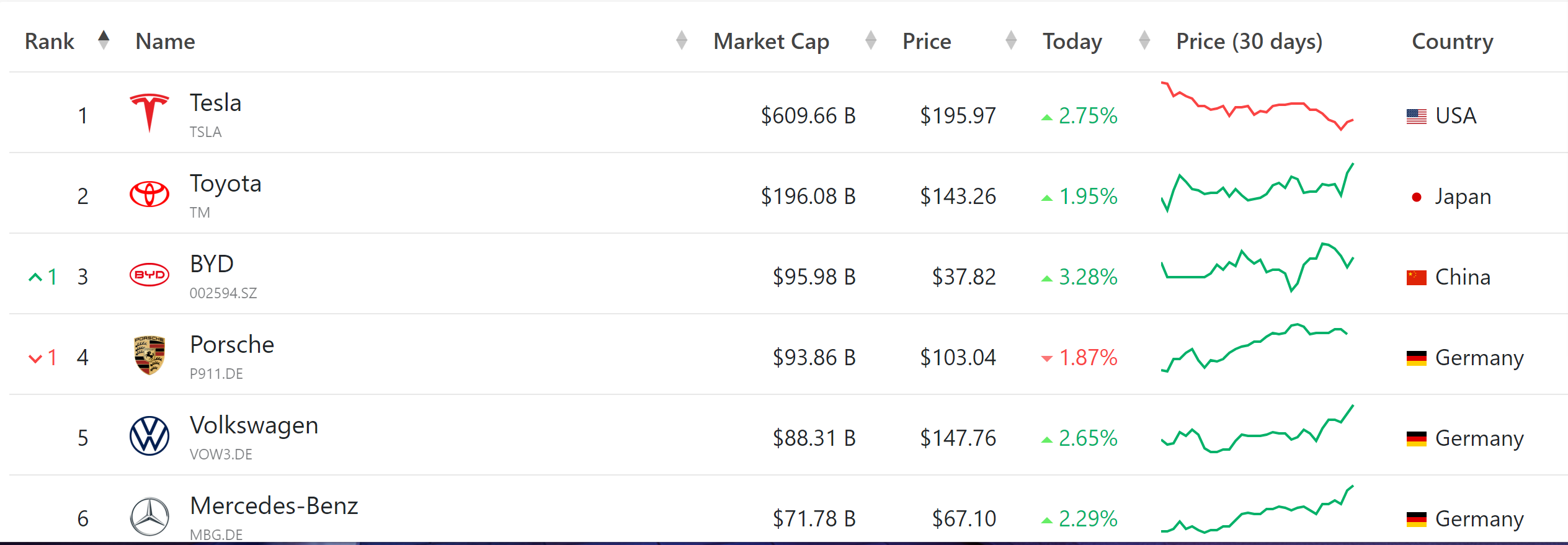 丰田还需要面对来自资本市场的压力。特斯拉已成为全球汽车行业市值最高的公司,比亚迪也在全面电动化转型后超越大众等传统汽车公司,成为全球市值第三的车企。9月,保时捷上市成为欧洲近十年来最大规模IPO,大众也借此套现195亿欧元,并考虑未来出售更多保时捷股份以加速其电气化转型。截止11月13日,保时捷的市值排名第四位。