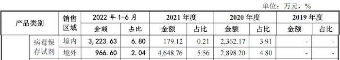 而Rhino Diagnostics LLC分别于2020年、2021年采购公司核酸类产品803.26万元、1154.09万元,但2022年上半年未出现在前五大外销客户中。