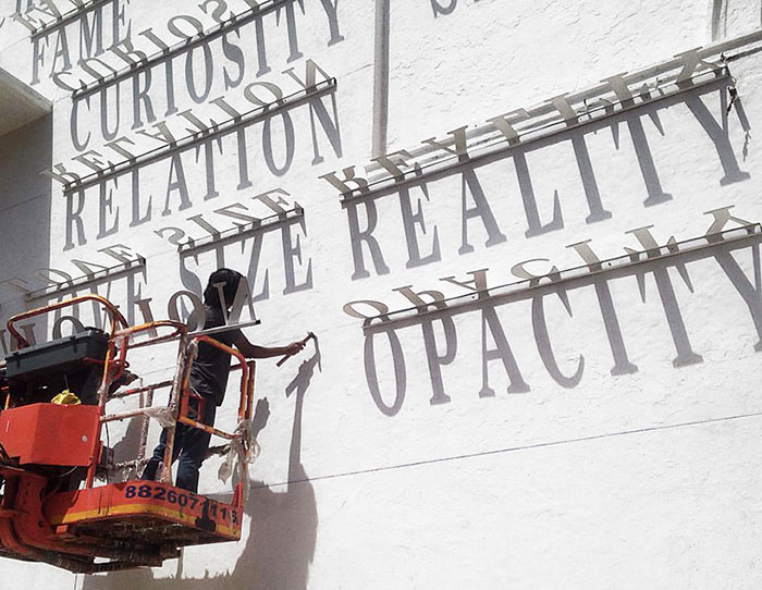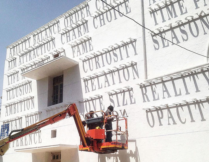 灵感来源于古代人测量时间的方法,Daku的新作品像是一种运动着的涂鸦,会随着时间的改变而变化。在阳光照射下出现的字样象征着那些永远伴随着我们的事物,比如太阳和时间。