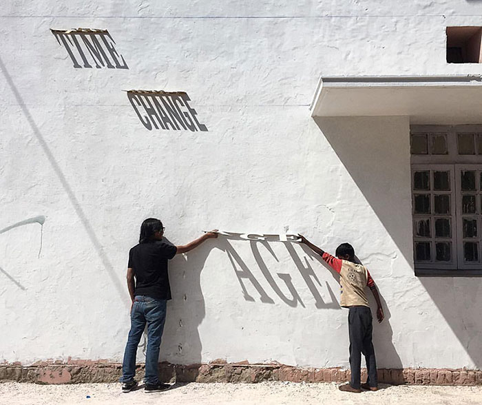 “时间改变一切”是印度涂鸦艺术家Daku的最新作品,位于新德里Lodhi殖民区,在这件作品中,Daku将阳光利用到了极致。