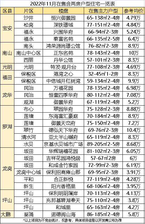 据中原数据显示,深圳2022年前三季度最受欢迎的楼盘中,不少就有两房户型,并且成交活跃。
