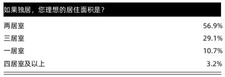 不考虑其他,从购房选择看,有56.9%的人认为两居室是独居群体的理想居住户型。