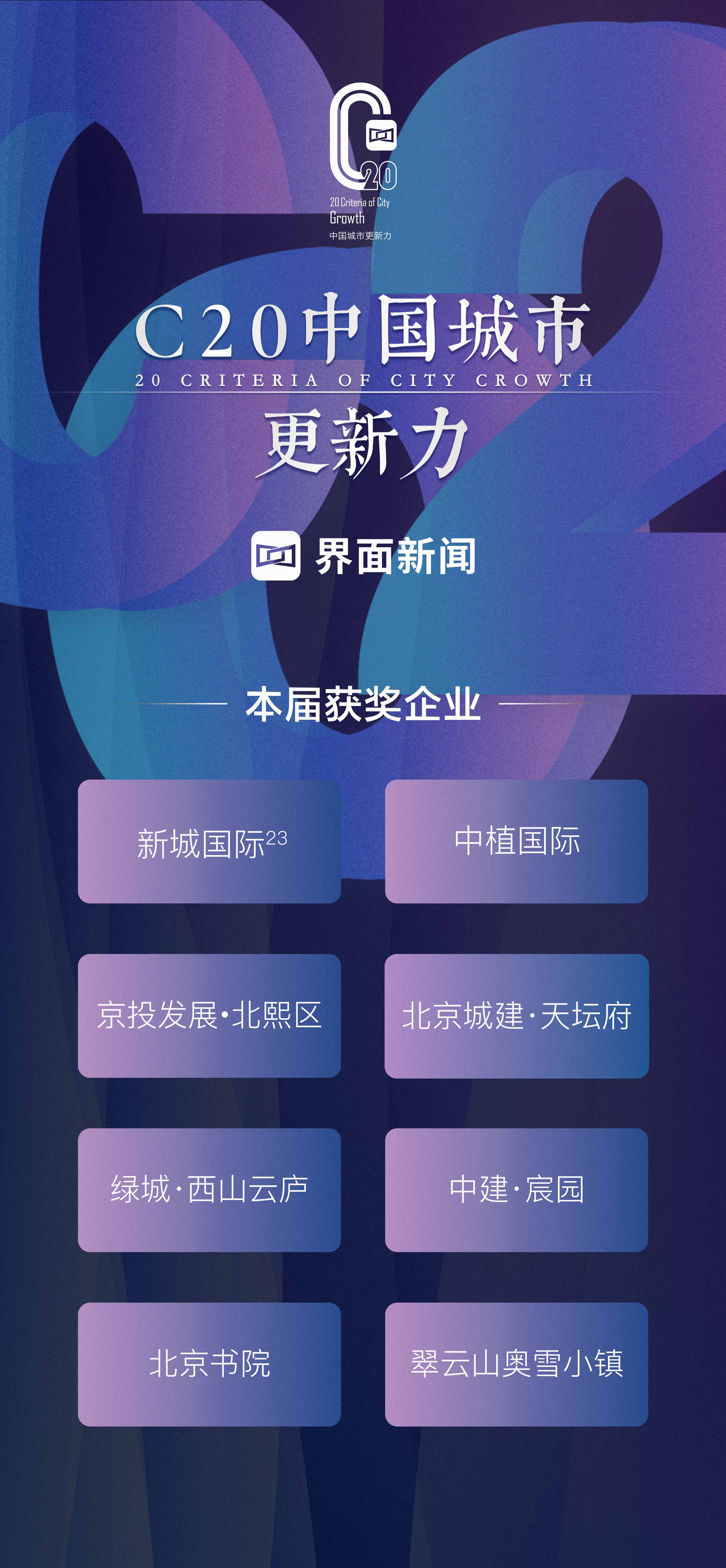 同时,历时近半年、历经三轮严酷选拔,在本次C20城市更新力活动中,共有8家企业凭借在城市更新及设计方面的出色表现,分别斩获建筑设计、城市更新设计、21世纪当代建筑设计、城市更新力量等城市更新力大奖。