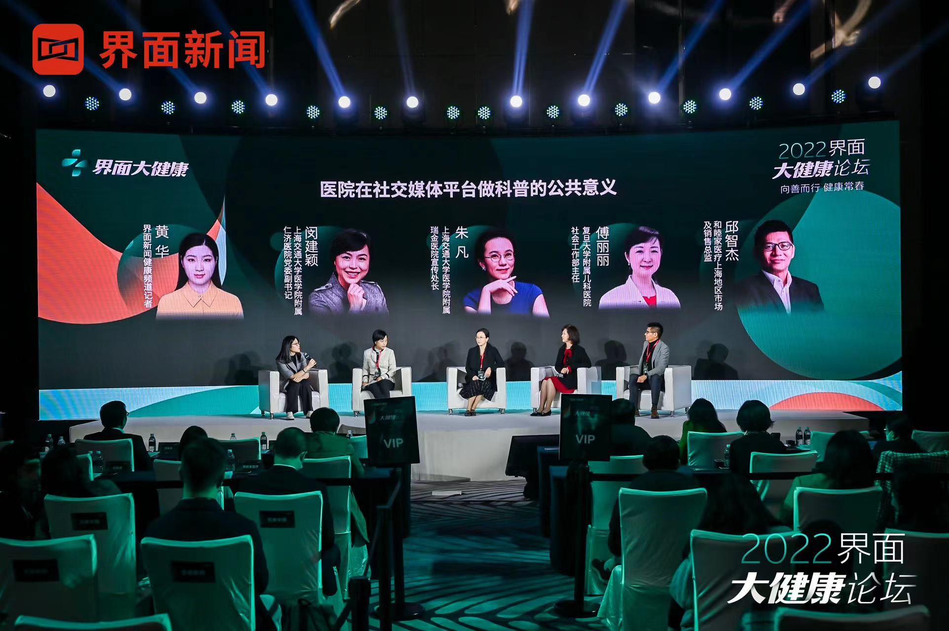 圆桌论坛2以《医院在社交媒体平台做科普的公共意义》为题展开讨论。由界面新闻健康频道记者黄华担任主持,上海交通大学医学院附属仁济医院党委副书记闵建颖、上海交通大学医学院附属瑞金医院宣传处长朱凡、复旦大学附属儿科医院社会工作部主任傅丽丽、和睦家医疗上海地区市场及销售总监邱智杰参与这一环节的讨论。