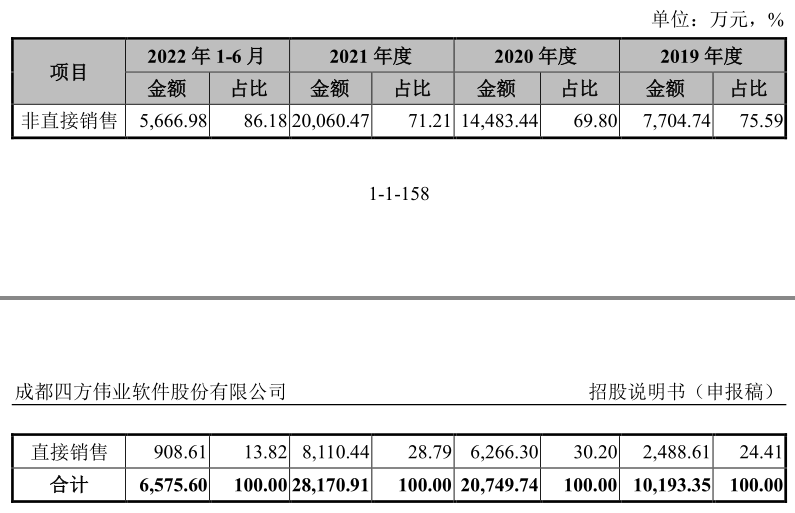 销售模式方面,四方伟业分为直接销售和非直接销售两种,主要是非直接销售模式,即通过系统集成商或专业应用软件开发商等生态合作伙伴进行销售。2021年,公司非直接销售占比达到71.12%。