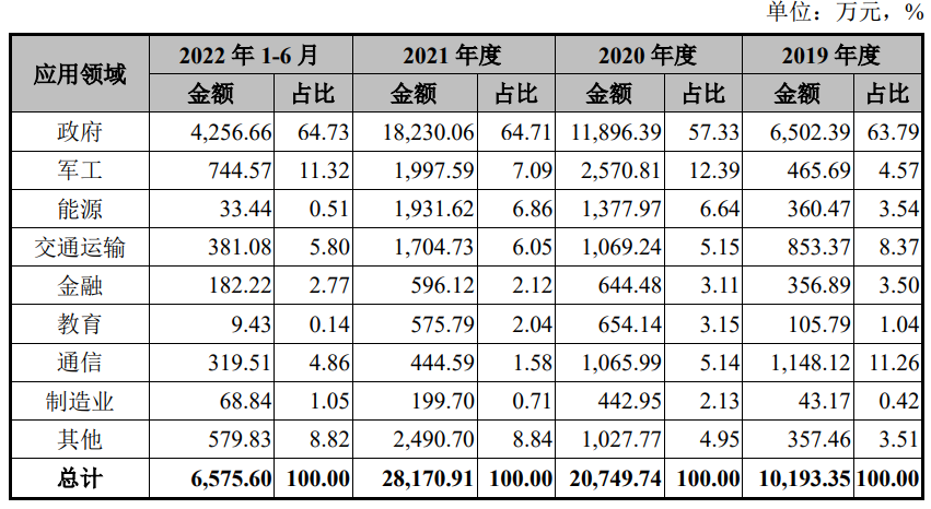 因此,四方伟业能否获得回款取决于最终下游。从下游的应用领域看,公司对政府订单极为依赖,除2020年外,政府订单占公司收入比例均在64%左右,此外,军工和交通行业的比例也相对较高。