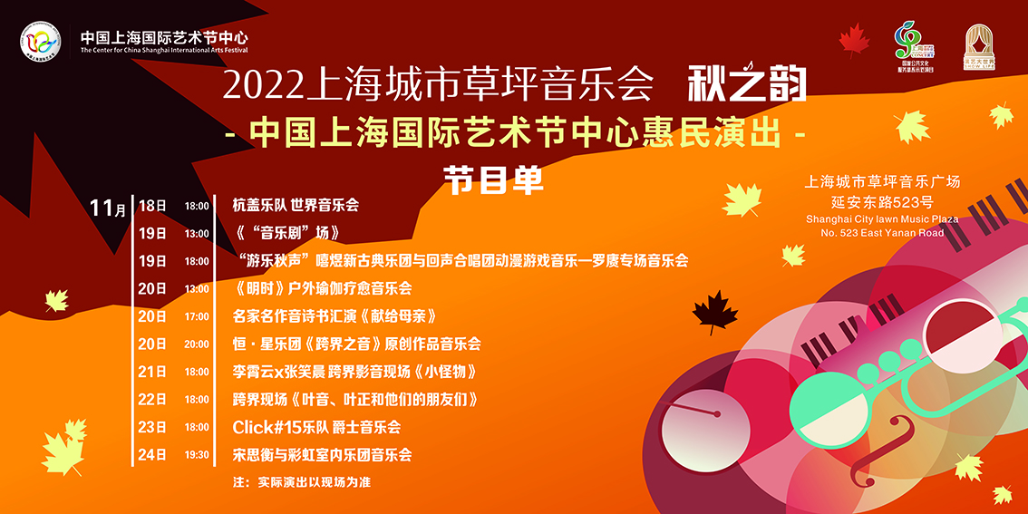 2022年11月18日,以融合蒙古民族特色和当代摇滚元素为风格的杭盖乐队,在上海城市草坪音乐广场呈现了一场音乐之旅。这场演出也是今年“礼赞新时代,奋进新征程”中国上海国际艺术节中心艺术惠民活动的收场演出。自此,未来的两周里,来自全国各地的优秀文艺团体将在上海“演艺大世界”、“五个新城”带来40余场惠民演出。