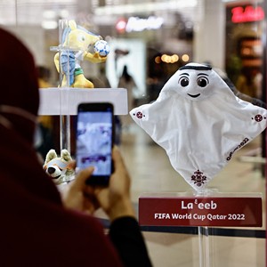 2022卡塔尔世界杯吉祥物拉伊卜,原型是卡塔尔传统服饰,平面设计图线条简洁,有着雪白的身体、飘逸的传统头饰。卡塔尔世界杯组委会对吉祥物的面部表情和姿势细节要求严格。经过八个版本的工艺改良,得益于东莞本土产业链从设计、3D建模、打样到生产等环节的通力合作,有着“东莞籍”的世界杯吉祥物拉伊卜(La'eeb)毛绒玩具在全球30余家企业的样品中脱颖而出,亮相卡塔尔赛场。