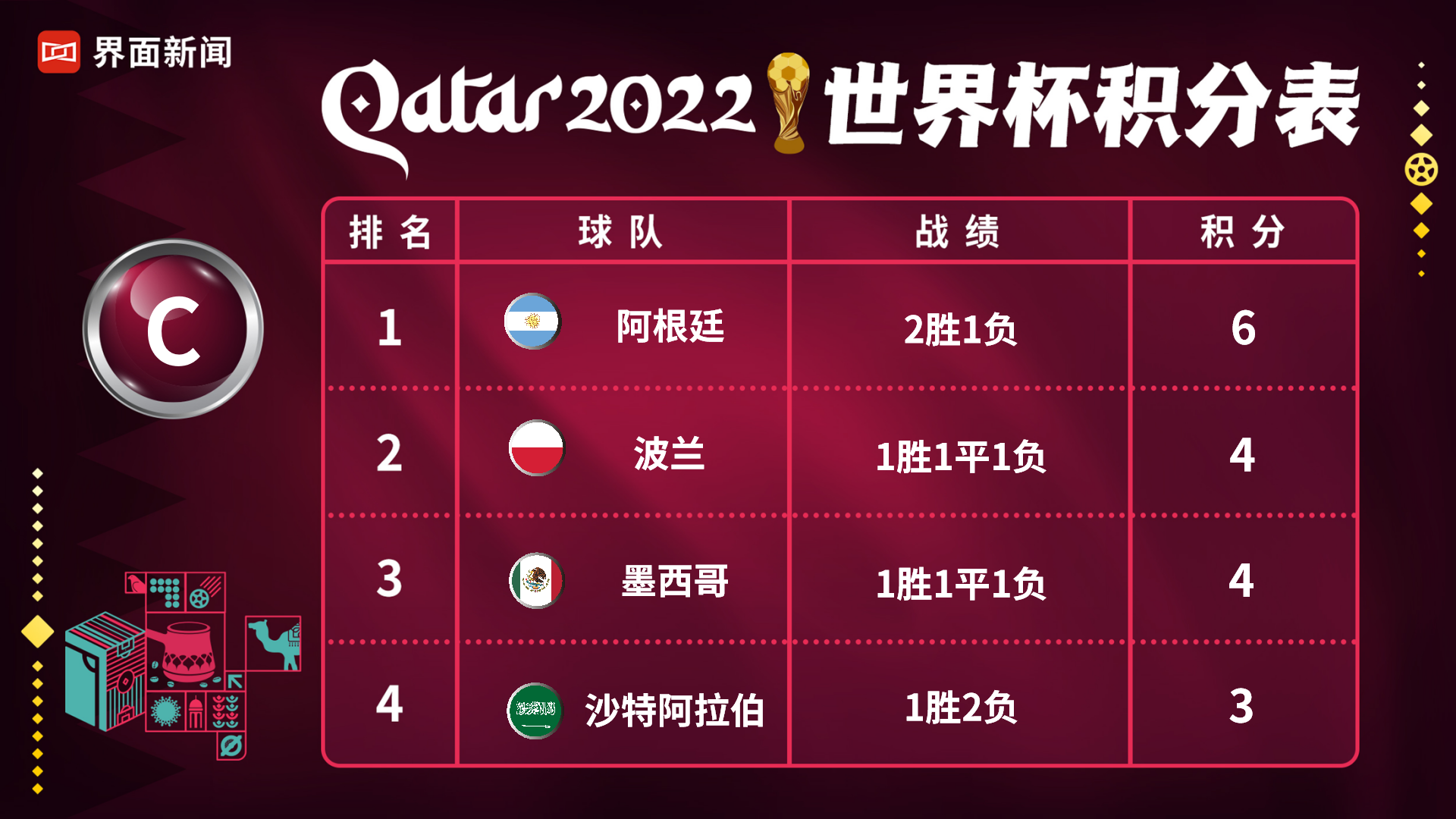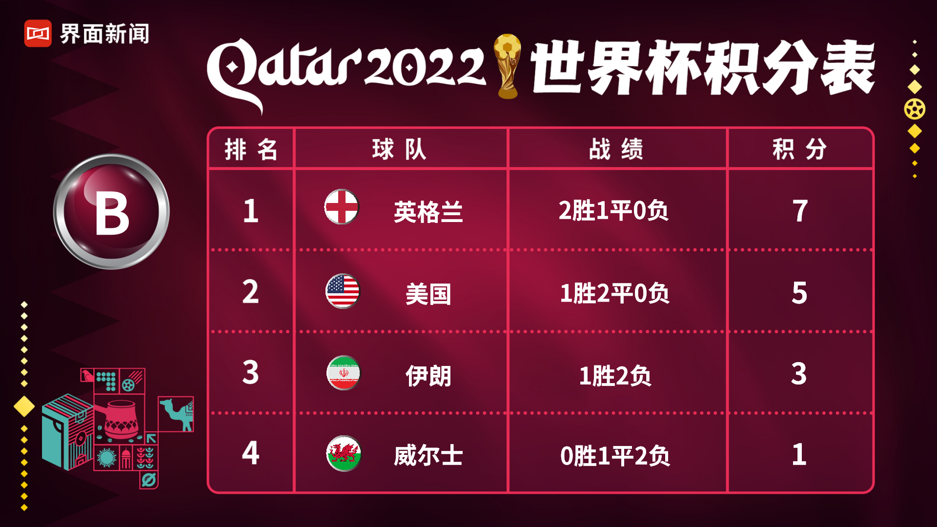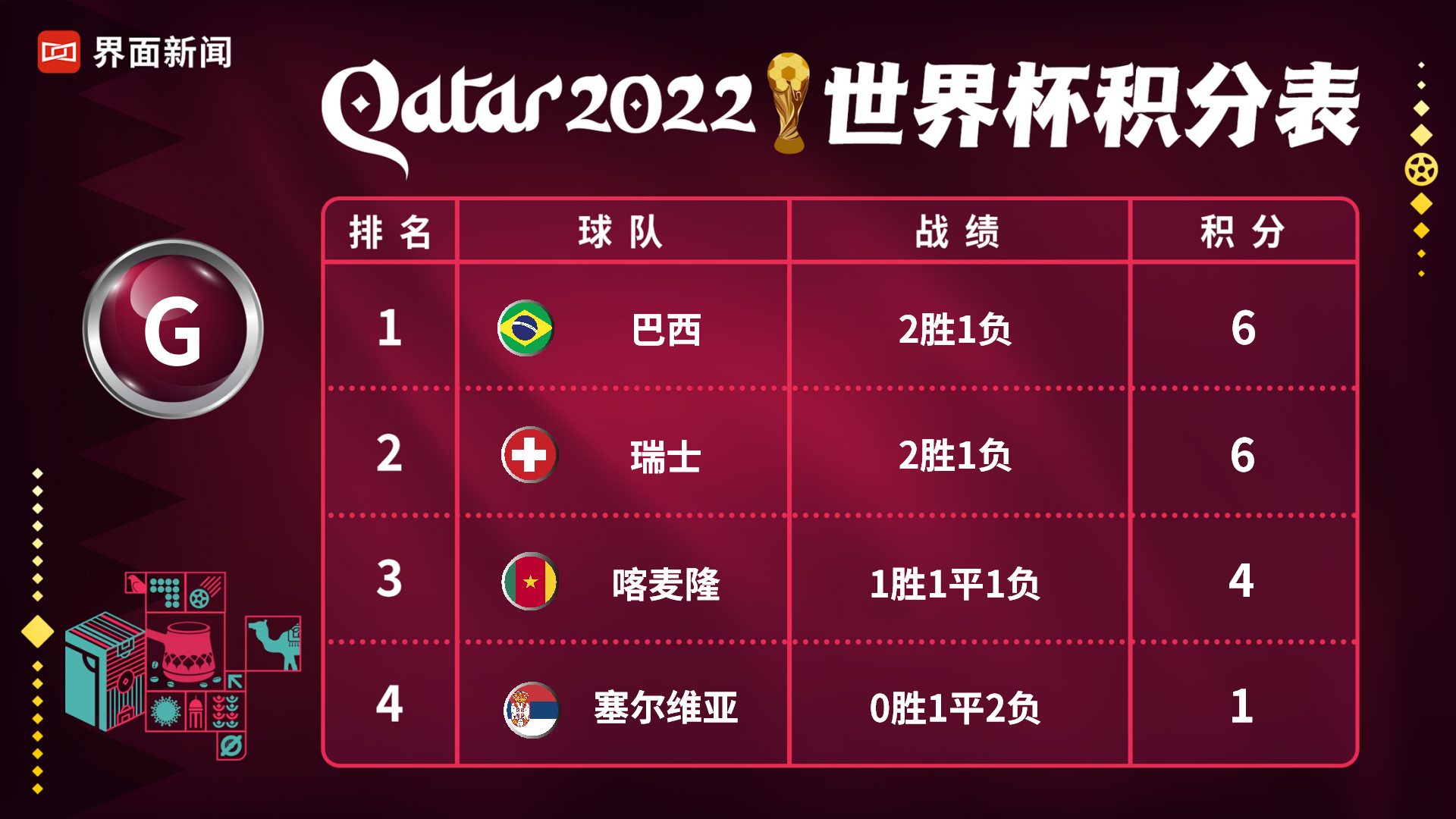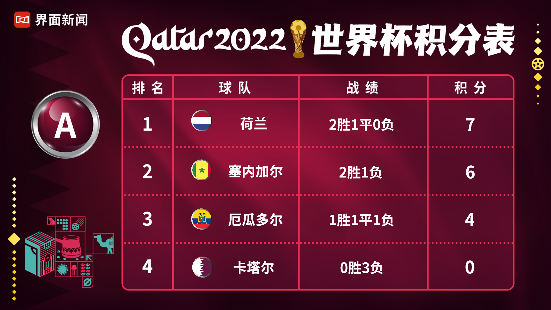 实时更新 | 卡塔尔世界杯积分榜
