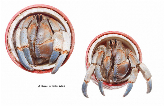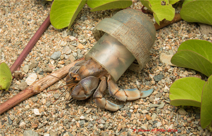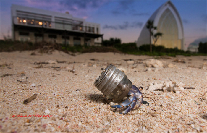 最开始,摄影师Shawn Miller对于这些寄居蟹的适应能力感到十分吃惊。那是在2010年。“经过了这几年,”他在邮件中写道:“我不断发现寄居在垃圾中的螃蟹。我意识到海岸线上堆积了越来越多的垃圾,我慢慢觉得这是一个严重的问题。”