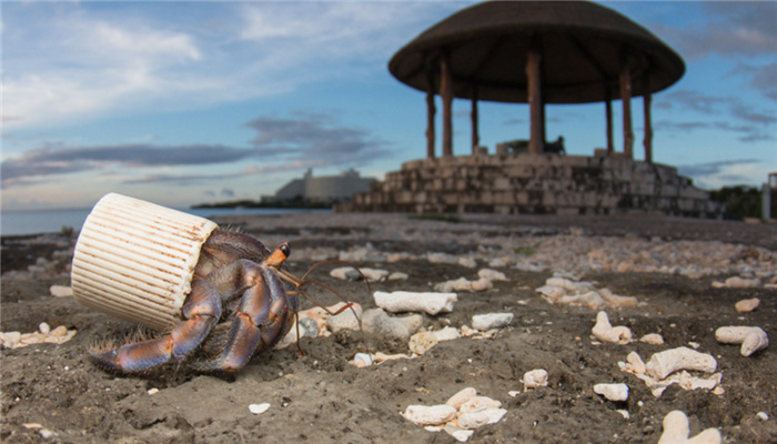 9月5日,一个最新发布的报告显示,海洋温度大幅上升、人类在海洋中的活动已经对食物链中所有的生物造成了影响。生活于冲绳县的陆寄居蟹就是一个典型的例子。如同其他的寄居蟹,陆寄居蟹也需要外壳来保护他们柔软的躯体。为了适应周围不断改变的环境,这些特殊的寄居蟹不再用贝壳来作为掩护,相反却躲在垃圾中。
