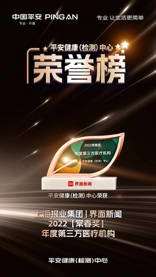 2021年,平安健康(检测)中心首次作为专业的第三方医疗机构荣获“常春奖”,凭借对分级诊疗国家政策的积极响应、向善而行推动区域医疗资源共享、致力于化解医疗资源不均社会难题的社会责任感,在数百家医疗机构中突围。(去年获奖详情回顾:再获殊荣!平安健康(检测)中心荣获“年度第三方医疗机构”)