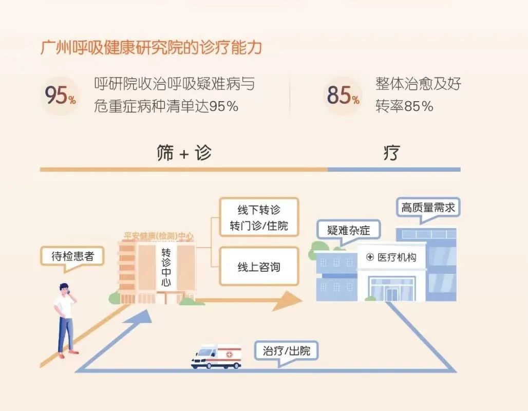 同时,联动广州呼研院,携手达成胸外科复杂疾病诊疗联盟战略合作,共同提升胸外科复杂疾病的诊断与治疗水平,平安健康(检测)中心作为协作平台,在全国范围内负责胸科复杂疾病的初筛,为阳性患者提供就医协助服务。通过强强联合,打通胸部复杂疾病的“筛-诊-疗”全病程管理,帮助患者得到精准高效的治疗。