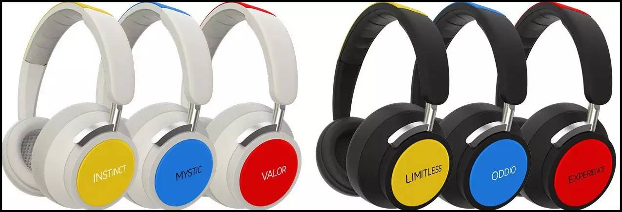 组合中的耳机有 3 种不同色的皮肤,分别代表 Pokemon Go 对战中的三个阵营,皮肤上还有12个不同的字符,用来标示不同训练师的身份