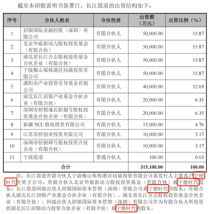 2021年6月,长江晨道以现金方式认缴公司注册资本441.14万元(增资价为18元/注册资本),合计投资7997.87万元,截至发行前持有公司9.01%的股份位列第四大股东,长江晨道背后有宁德时代身影。