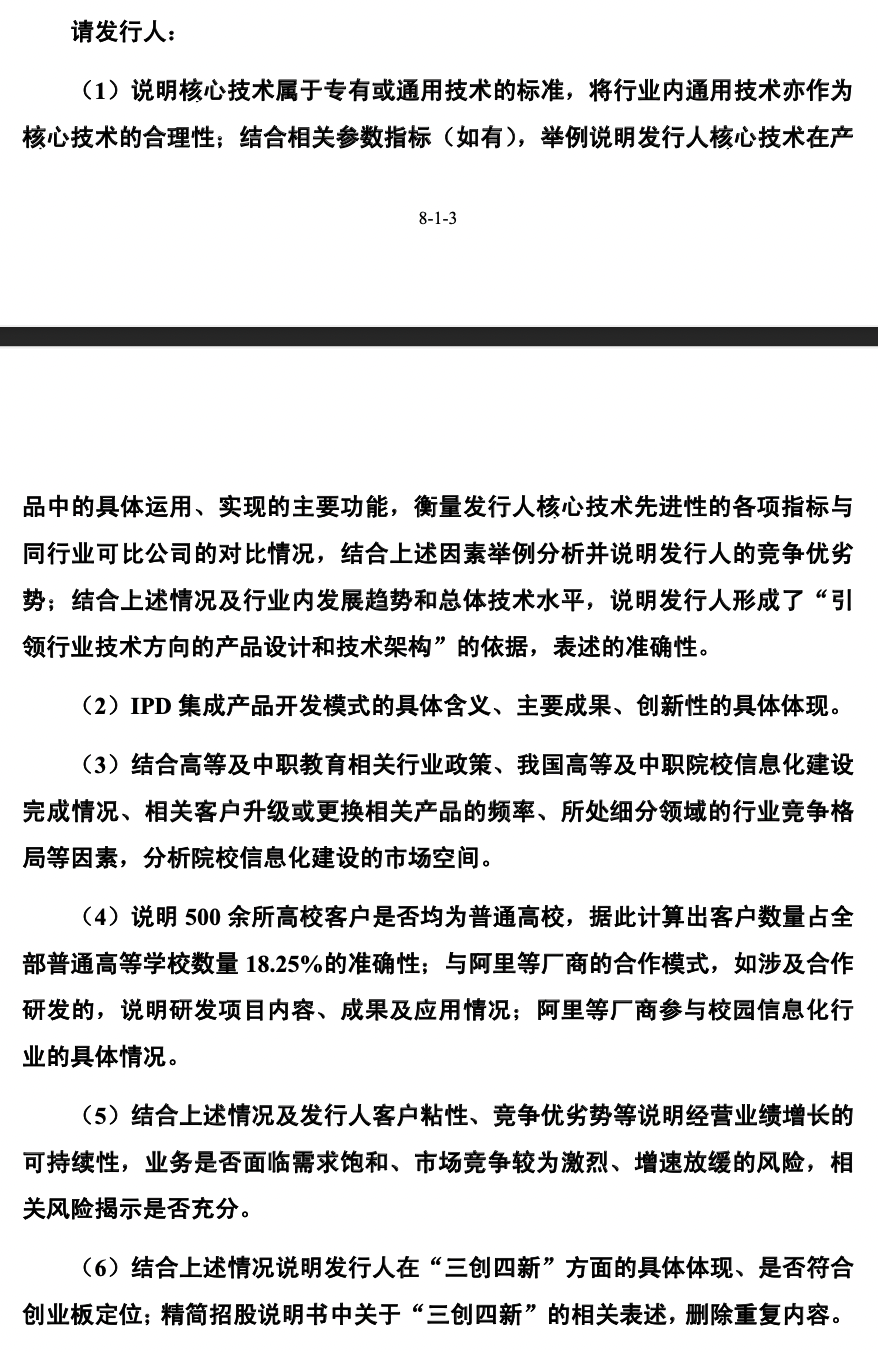 今年6月30日,金智教育转战创业板获得受理,目前等待回复2轮审核问询。
