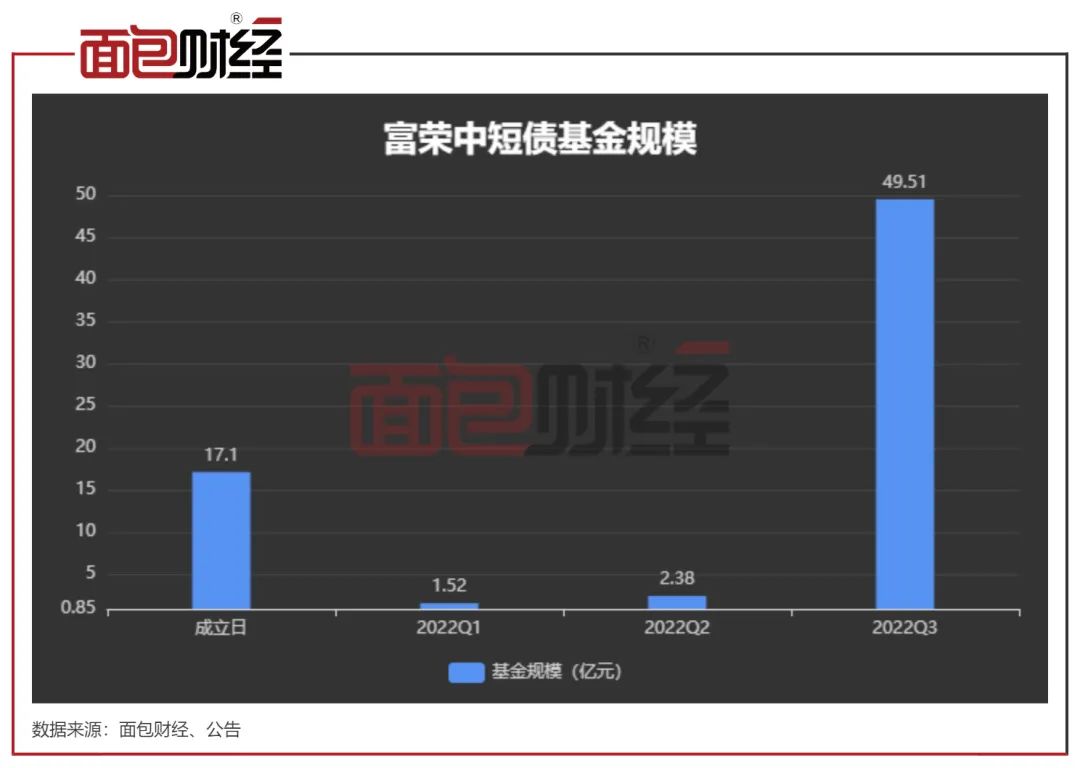 成立后不久,富荣中短债的基金规模急速下降至1.52亿元。2022年三季度末,或因公司加大宣传力度,富荣中短债从“冷门”基金变成“人气”基金,基金总规模猛增至49.51亿元。