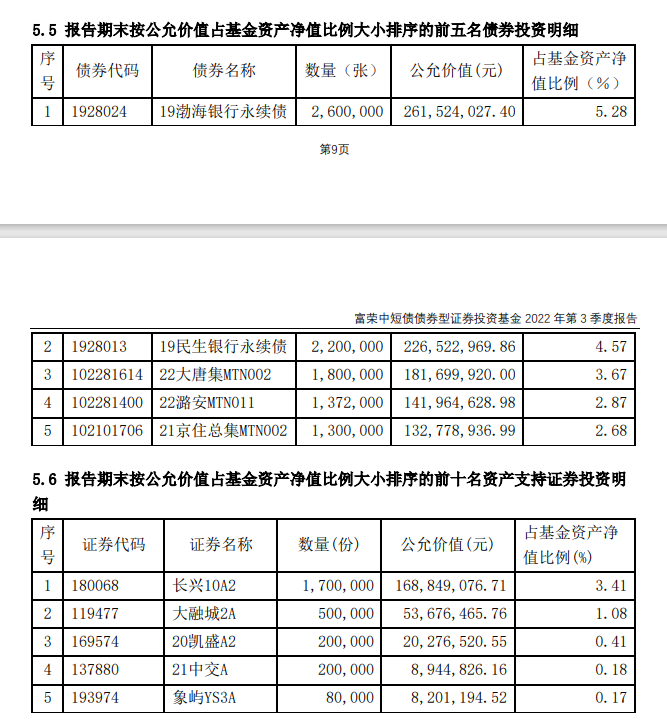 富荣中短债在2022年三季度披露的投资比例较大的部分债券名单中,大融城2A在2022年11月21日下跌49.24%,其基金净值占比较少;其他产品在近期并没有出现大幅跌价的情形。