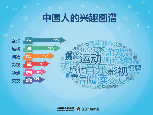 2016年9月8日,腾讯QQ兴趣部落联合中国社会科学院国情调查与大数据研究中心发布《中国兴趣报告》。从调研数据上看,国人其实仍是兴趣广泛的一群人,而且年轻人的兴趣,更具多样化。
