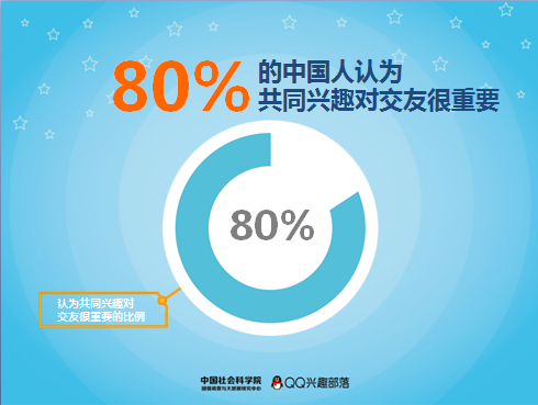 调查也显示,80%的国人认为共同兴趣对交友,是非常重要的。换而言之,大多数的人因兴趣相同而聚合在一起。