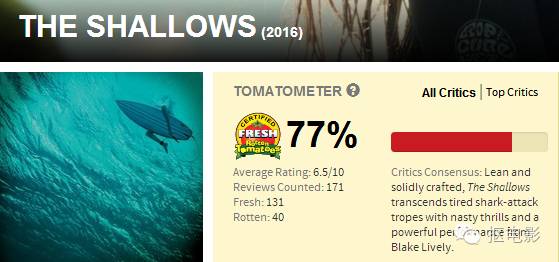 《鲨滩》6月底在北美开画,烂番茄新鲜度77%