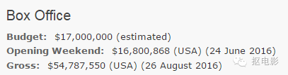 制作成本1700万,目前北美票房5400万,全球票房超8000万