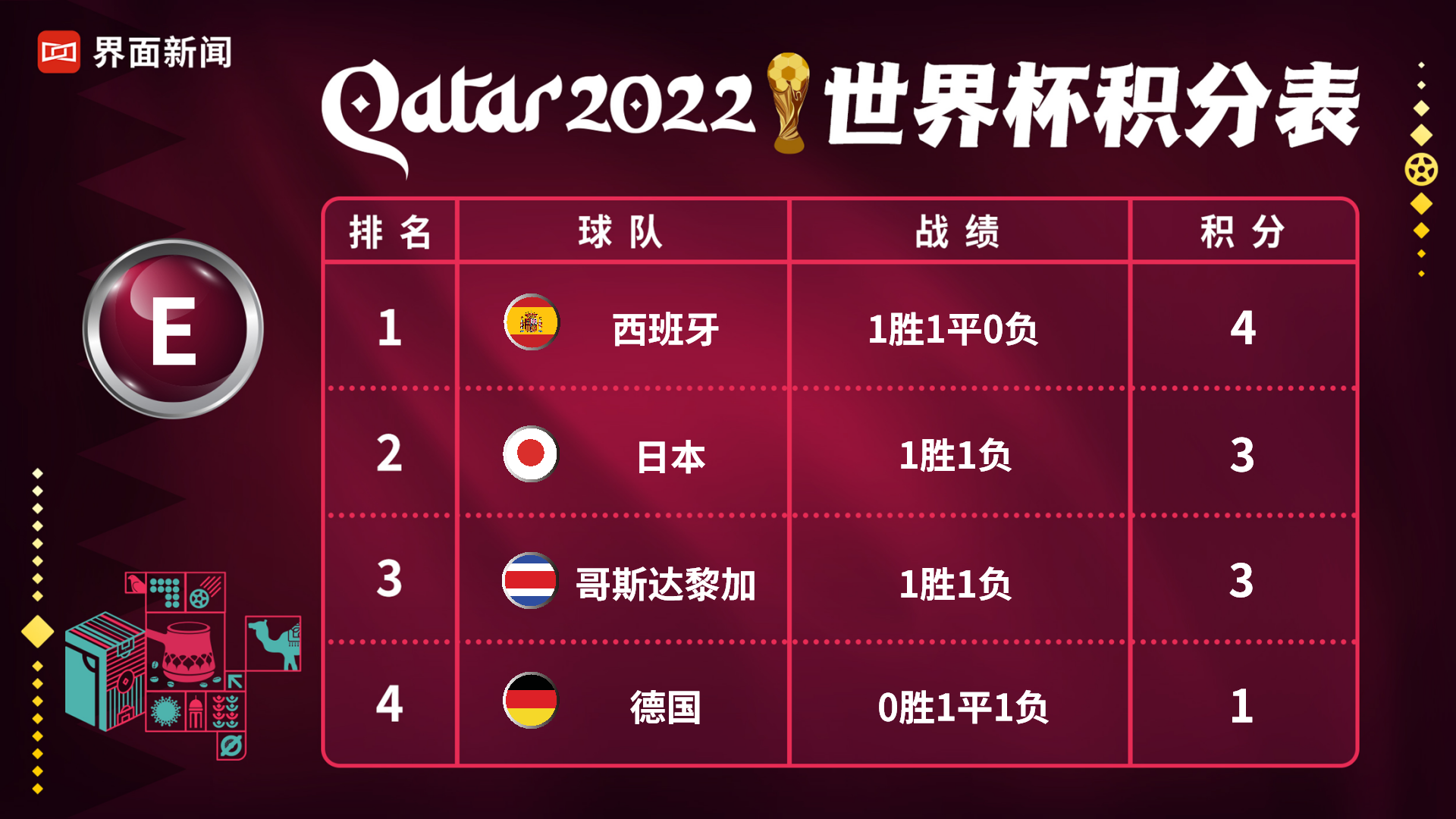 北京时间2022年11月28日,随着德国1-1战平西班牙,卡塔尔世界杯E组次轮角逐落下帷幕,作为本届世界杯公认的“死亡之组”,E组的出线形势仍然扑朔迷离。