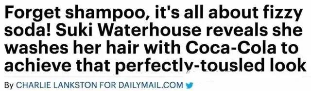 就在前段时间,从超模转演员的Suki Waterhouse公开了一个自己让头发保持清爽柔软顺滑的秘密——用可乐洗头。