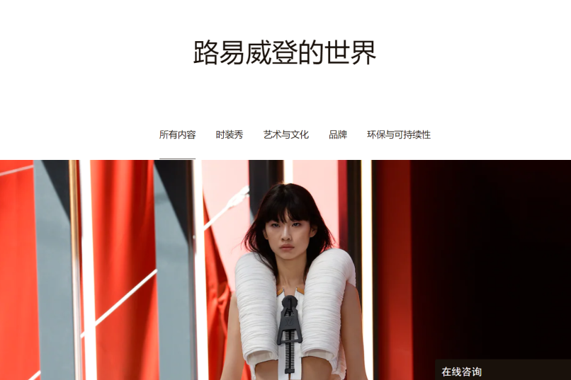 打开Louis Vuitton的中国官网,可以看到除了涵盖不同产品购买的目录,还设立了「生活艺术」和「路易威登的世界」等版块。其中,「路易威登的世界」里,消费者不仅可以回顾以往品牌的时装秀,还能了解到Louis Vuitton在艺术与文化方面的活动,和环保可持续方面的产出。