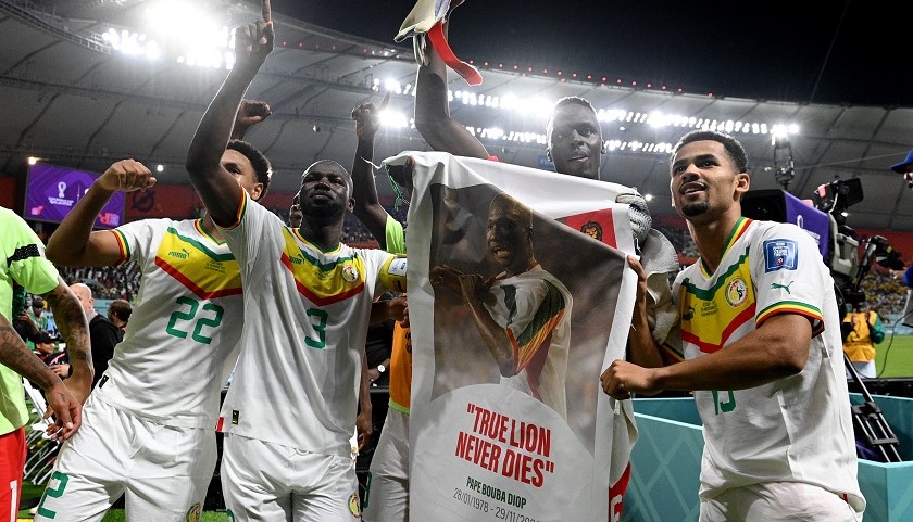 赛后,塞内加尔全队和球迷举着印有迪奥普照片的海报,看台上的塞内加尔球迷站成一排,后背绘着迪奥普生前的19号,以此来纪念这位塞内加尔足坛的传奇名宿。因为这一天刚好是迪奥普去世两周年的祭日。