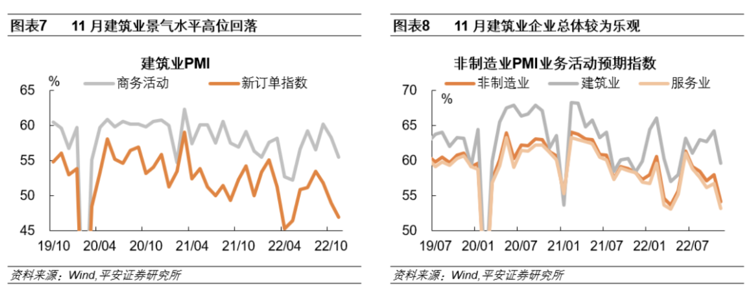 三是,稳地产政策在执行层面加快落地。11月以来,稳地产政策进入更务实阶段,信贷、债券和股权融资“三箭齐发”,这在建筑业PMI中尚未得到体现,表明稳地产政策在实行层面需更快推进。