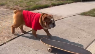 这并不是什么宠物杂技的罕见场面,而是北美宠物培训当下最火的课程之一:教你的小狗滑滑板。最近,北美萌宠圈兴起了“拍滑板小狗”的浪潮。最初只是在短视频平台风靡,进而有越来越多的宠物主参与进这场“游戏”。