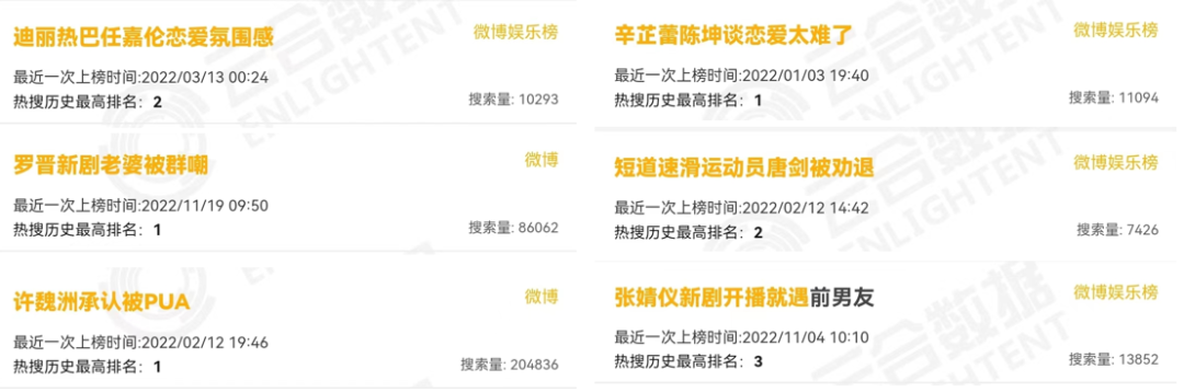 #迪丽热巴任嘉伦恋爱氛围感##辛芷蕾陈坤谈恋爱太难了##罗晋新剧老婆被群嘲##许魏洲承认被PUA##短道速滑运动员唐剑被劝退##大勋 渣男##张婧仪新剧开播就遇前男友#......