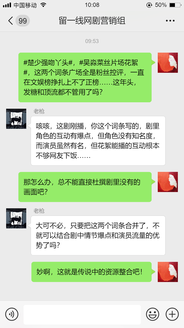 对此,剧宣应积极开拓营销的渠道与形式,在不同平台投放适应其场景的宣传内容,追踪网友的实时讨论并顺水推舟,利用热搜的声量来凝聚和放大各平台自然发酵的话题与亮点,而非以KPI先行的策略,通过文不对题的热搜来平地起高楼。