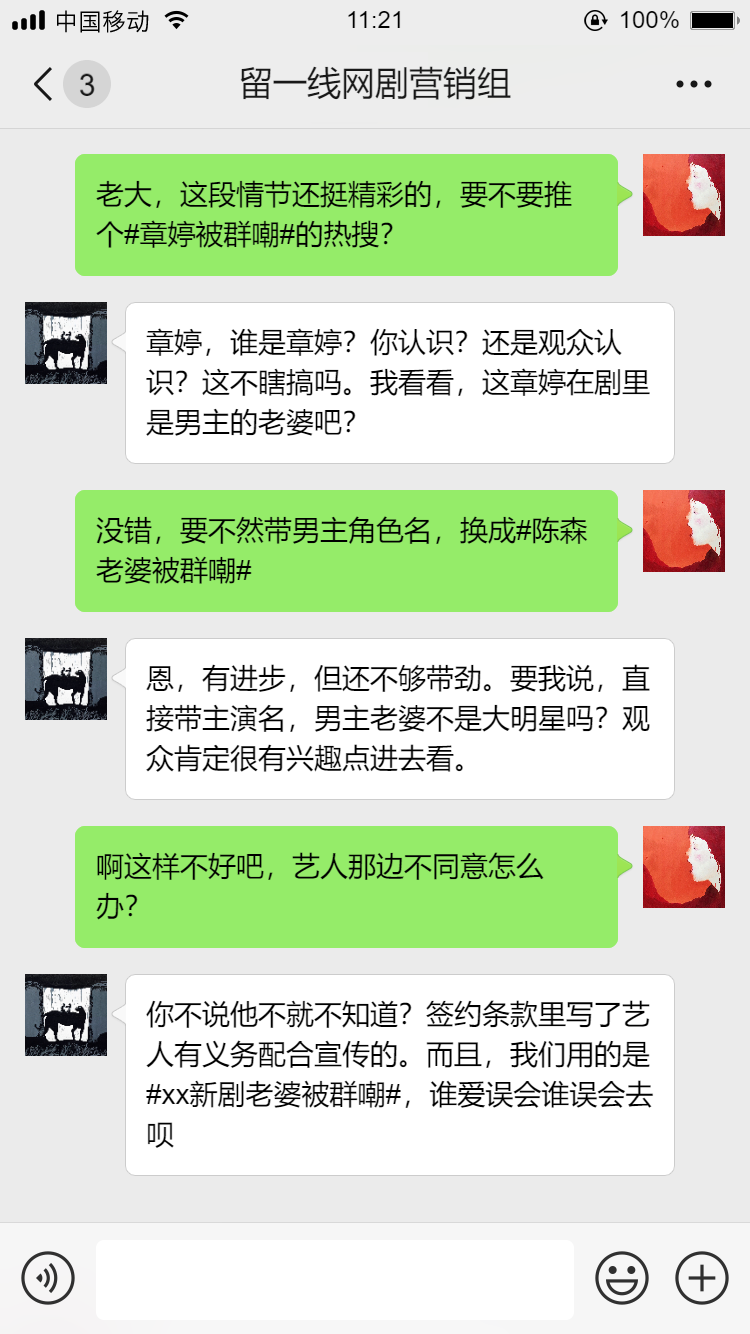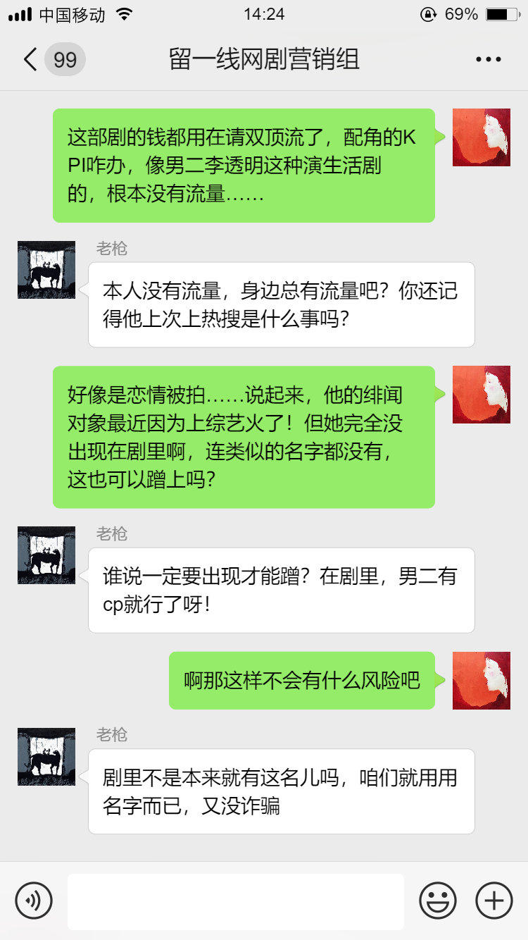 在剧集热搜中,艺人知道自己被营销了吗?曾经的艺人经纪五海透露,“这要依据影视制作公司与艺人的签约条款来定,一般来说,艺人有配合影视宣传的义务,部分条款还会写明至少参加发布会、配合几次线上互动宣传。对艺人来说,热搜本来就是一个重要的曝光渠道,很多艺人还会在剧播期间单独找营销公司做热搜。但剧方的一些出格的操作,有时候艺人事先也无法得知,因为宣传条款里不会详细到每个节点或词条。”