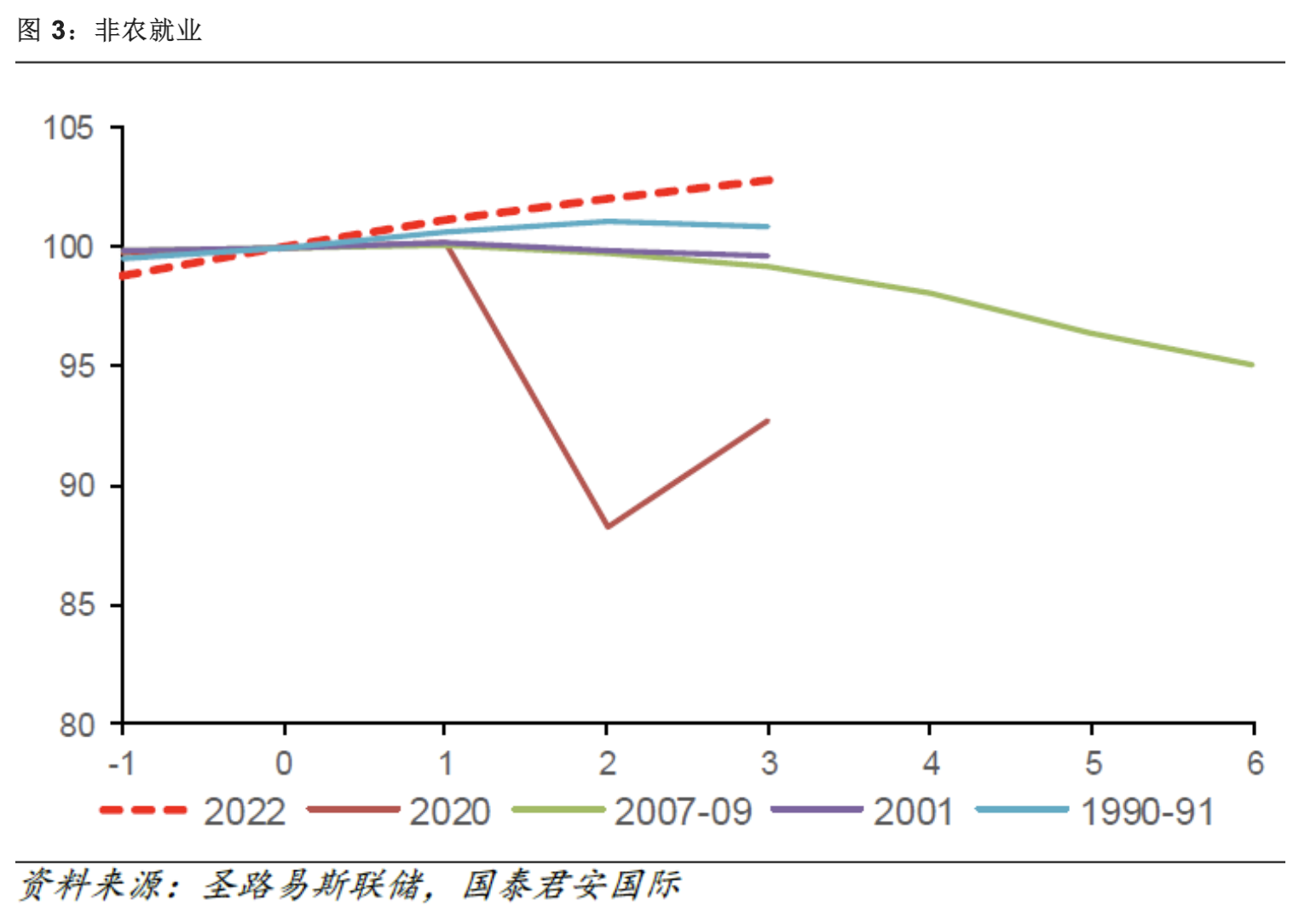 (3)“衰退”落空:在“衰退”落空情境下,美联储可能保持利率高位,经济增速将>0.5%。发生的可能性在10%。这也是鲍威尔在近期讲话中提及的“软着陆”(Soft Landing)的情况,即通胀保持整体下行但仍处于高位,美联储可以保持较高利率来管理通胀预期,与此同时,较为健康的劳动力市场也能够输出一定的经济增长。